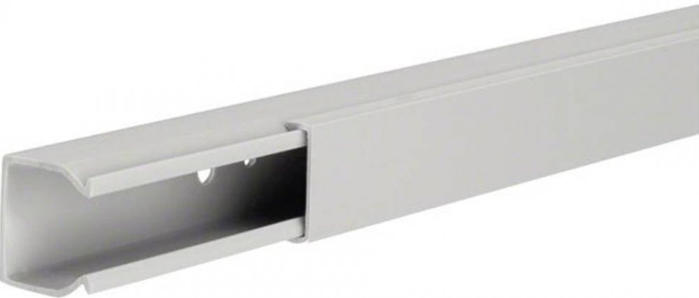 Vodicí lišta z PVC LF 25 x 25 mm, světle šedá. Elektroinstalační kanál elektrického vedení z plastu podle DIN EN 50085-1. Spodní díl kanálu s předřezanými otvory pro podlahu ve vzdálenosti 125 mm, od