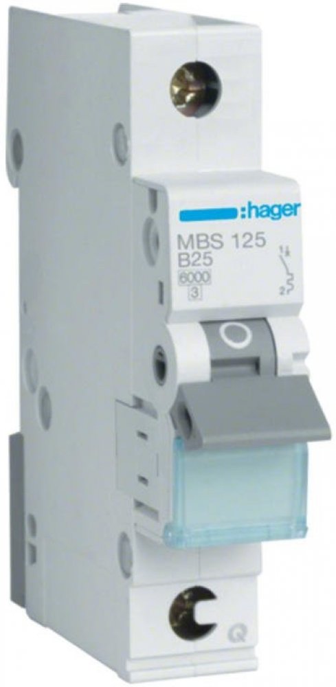 Jistič 1P 25A, char.B, 6 kA, bezšroubové svorky, Hager, MBS125