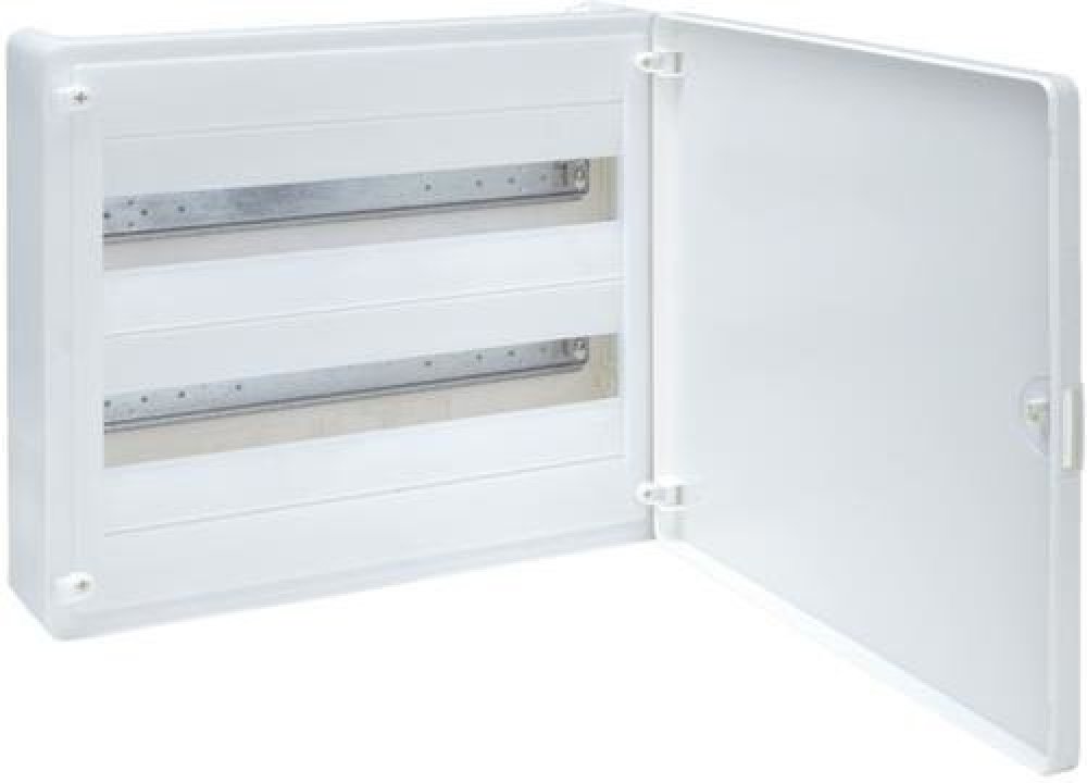 Rozvodnice pro nástěnnou montáž VS212PS pro přístroje hloubky 70 mm. Dveře umožňují pravou nebo levou montáž. Změna směru otevírání bez nutnosti demontovat kryt. Dveře se otvírají o 180°. Vstup do rozvodnice může být jednotlivými kabely, nebo lištou. Technické parametry: Počet modulů: 24 Počet řad: 2 Dvířka: plná Rozměry: 377 x 282 x 99 mm Barva: RAL 9010 Typ upevnění: nástěnná montáž Krytí IP: IP40 Třída izolace: třída izolace II Počet dveří: 1