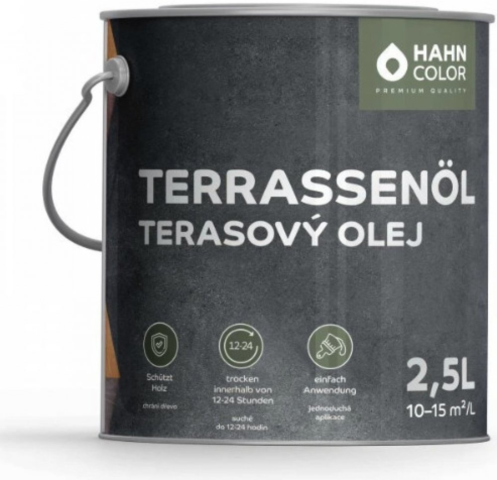 Hahn Color TERASOVÝ OLEJ je revoluční řešení pro ošetření a ochranu vašeho dřevěného exteriéru. Tento vysoce kvalitní olej na bázi modifikovaných alkydových pryskyřic je speciálně navržen pro hlubokou penetraci do dřeva, což zajišťuje maximální ochranu před povětrnostními vlivy, vodou a UV zářením. Ať už jde o zahradní nábytek, nebo dřevěné terasy. Hahn Color Terasový Olej je ideální volbou pro dlouhotrvající a spolehlivou ochranu.