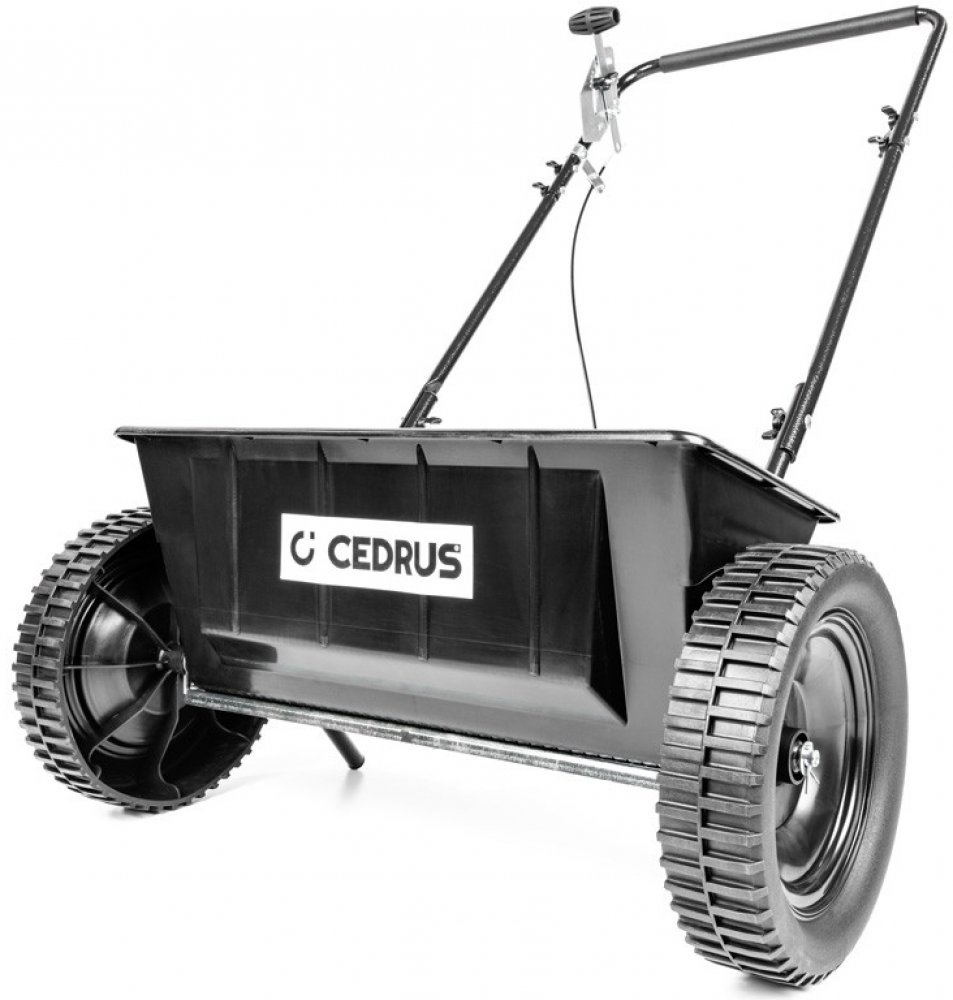 Rozmetadlo je vybaveno zásobníkem o rozměrech 60 × 12 × 23 cm, vyrobeným z odolného plastu, a regulační pákou, která umožňuje přizpůsobit množství rozmetaného materiálu. Velká kola o průměru 30,5 cm zajišťují plynulý pohyb po různých typech terénu a pomáhají přenášet sílu při rozmetání.
