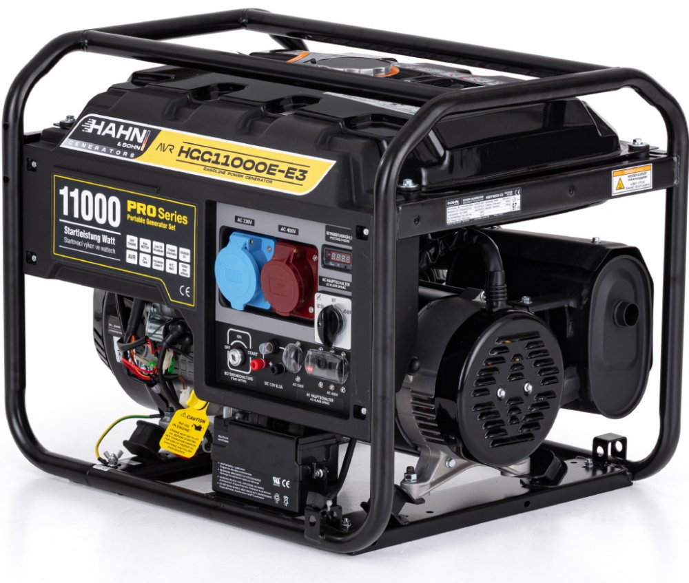 Hahn & Sohn HGG 11000E-E3 je moderní benzínová elektrocentrála, která zaujme svou spolehlivostí a bezproblémovým provozem. Díky tomu je Hahn & Sohn HGG 11000E-E3 všestranným pomocníkem pro staveniště, akce, v zemědělství nebo ve vašem vlastním domě. Generátor je vhodný i pro nouzové napájení.