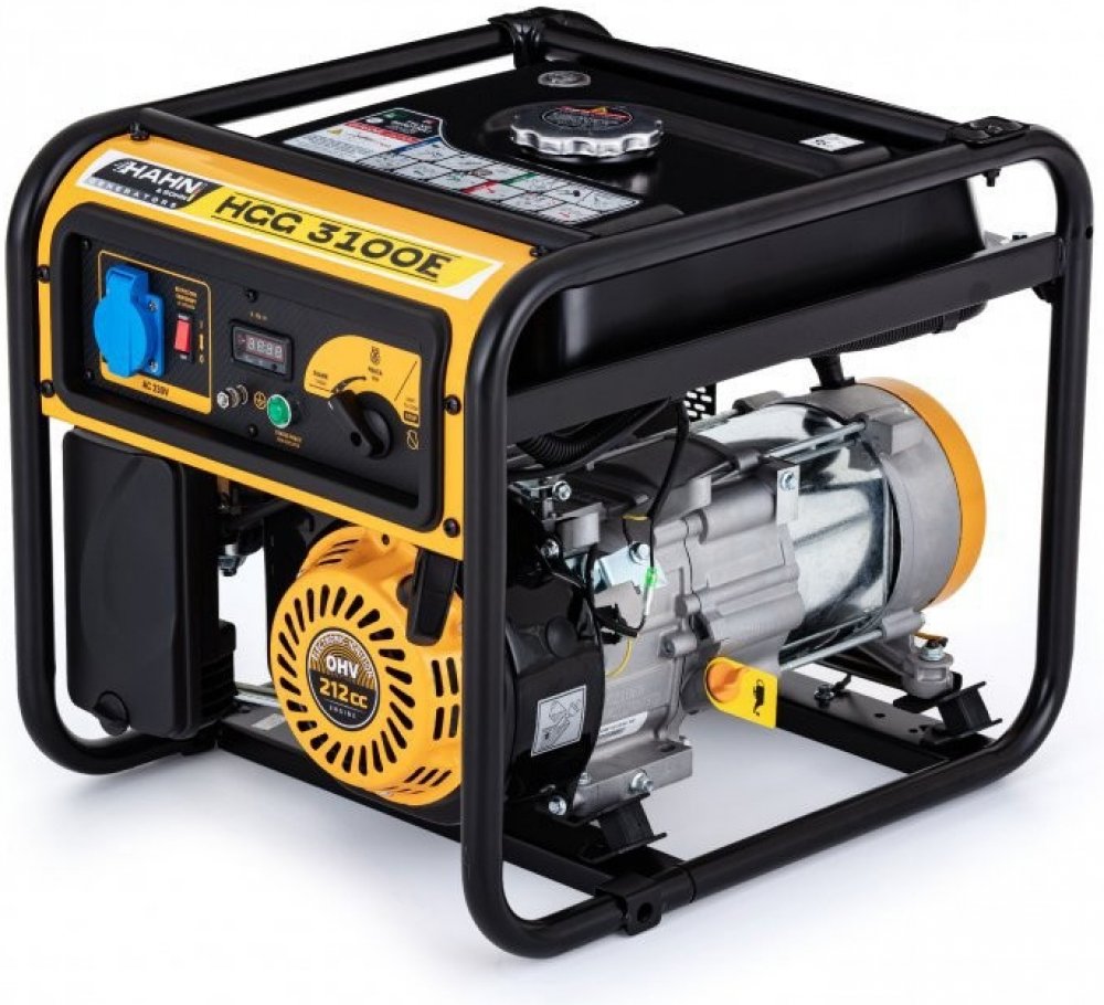 Vzduchem chlazený čtyřtaktní motor o zdvihovém objemu 212 cm3 má velkou 9 l nádrž, která umožňuje dlouhý a bezproblémový provoz až 6 hodin. Generátor se spouští ručně a dodává 230V. Výsledný výkon 3,3 kW (maximální výkon) a 3 kW (jmenovitý výkon) dělá z generátoru výkonného společníka. Hahn & Sohn HGG 3100E má elektrický i manuální startér.