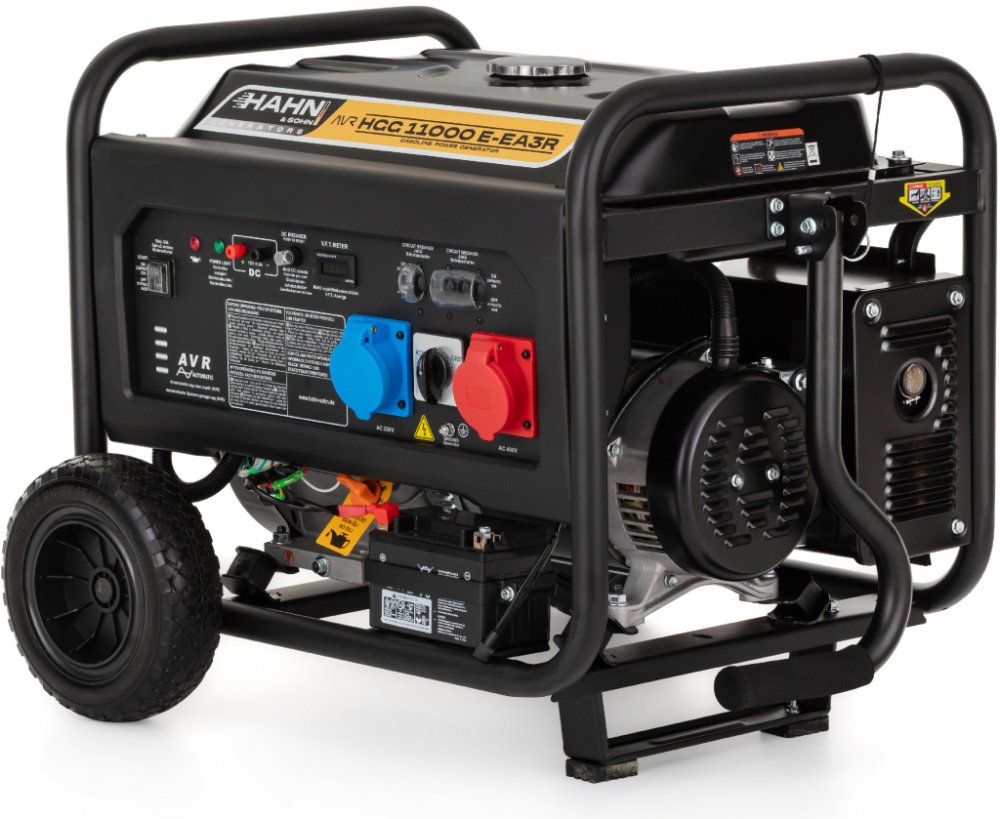 Benzínová elektrocentrála Hahn & Sohn HGG11000E-EA3R (3F) je výkonný třífázový generátor určený pro profesionální použití ve stavebnictví, průmyslu i jako záložní zdroj energie.