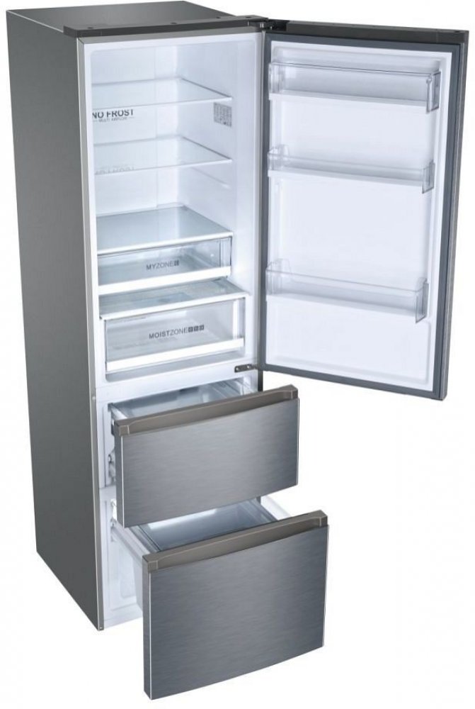 Chladničky Haier 3D 60 Series 7 o šířce 60 cm se vyznačují působivě navrženým systémem zásuvek v mrazničce, který umožňuje nejen efektivněji využívat prostor pro mražené potraviny, ale také zajišťuje rychlý přístup k celé mrazničce, čímž se ušetří až o 60 % více energie než v případě podobných chladniček s mrazničkou umístěnou dole. Technologie Fresher Techs® zároveň neustále upravují podmínky, aby bylo zaručeno zachování kvality potravin. Chladničky Haier 3D 60 Series 7 zaručují dokonalé uchovávání potravin díky speciálním zónám, moderním technologiím a mnoha dalším řešením, která se nacházejí v prostorech chladničky i mrazničky.