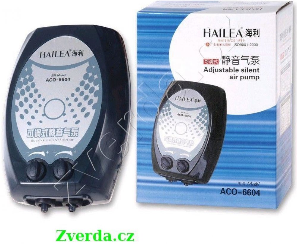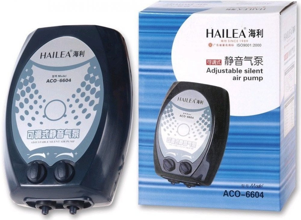 Hailea Vzduchovací kompresory ACO-66xx jsou velmi tiché, s nízkou vibrací. Vzduchovací kompresor ACO-6604 je určený pro akvária o velikosti 250 l a více.
