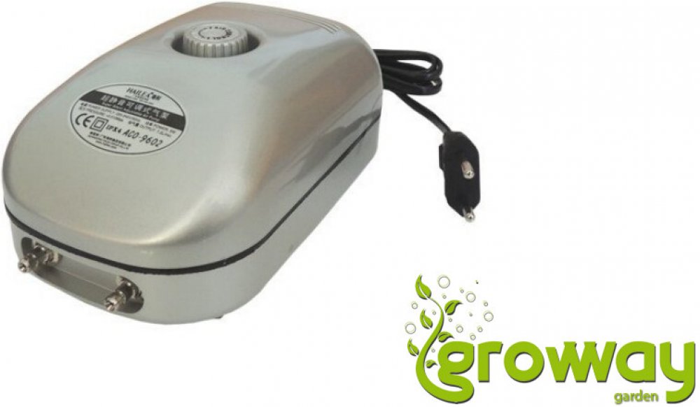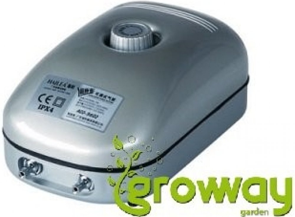 Nastavitelná kvalitní vzduchová pumpa - ideální pro provzdušňovací živných roztoků v nádrži. Sortiment vzduchových čerpadel s nastavitelným výkonem nabízí maximální flexibilitu v rozsahu možností nastavení. Jsou super tichá a mají velice nízkou spotřebu. Výstup na hadičku ke vzduchovacímu kameni je 2* 4 mm. Výkon 432 l/hod. Doporučujeme v kombinaci s ovzdušňovacím kamenem Ring.