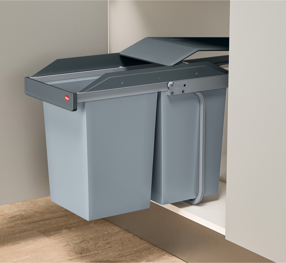 šedé plastové Hailo vestavné koše 3 s ručním otevíráním 33.0 cm 5.0 kg 28 l 43.4 cm 34.7 cm