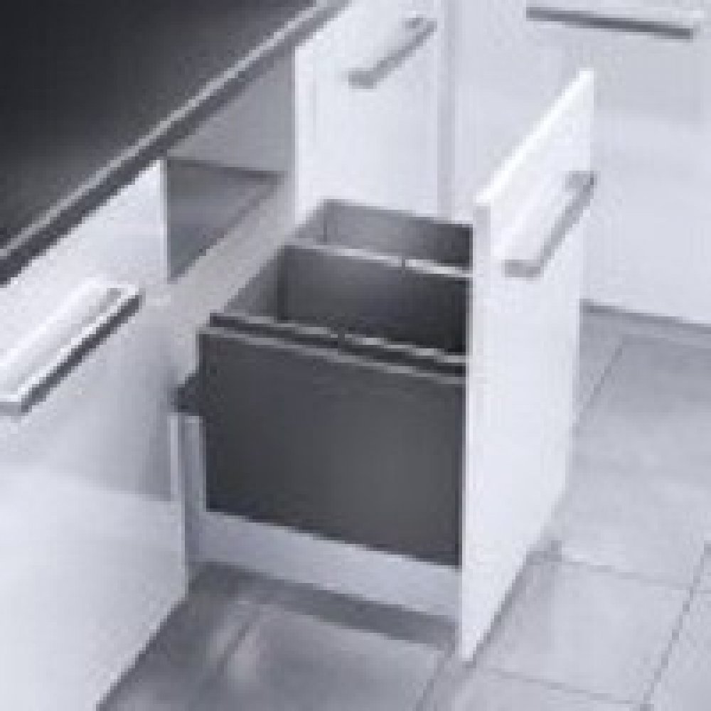 Máte-li vestavěnou kuchyň, musí být optimálně využito její místo. Zde je zásuvková vložka pro všechny standardní zásuvky (tlouš´tka bočního panelu 16 až 19mm). Systém se jednodušše nasadí na zásuvku a připevní několika šrouby. Kovové bočnice koše Triple XL hygienicky kryjí lišty výsuvů,