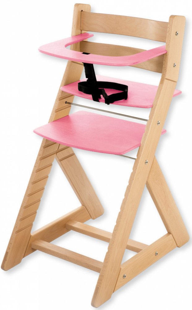 vysoká, s praktičností a bezpečností (certifikát dle ČSN 14988:2018) konstrukce je z masivu (buk) sedák a podnožka jsou lisovány z překližky pevnější než buk ergonomii sezení obstarává tvarovaná opěrka zad a podnožka výška a hloubka posedu se snadno přizpůsobí růstu dítěte pultík a bezpečnostní pásy předurčují Anetu k využití coby jídelní stoličky pro samostatně sedící děti od 9 měsíců do 120 kg