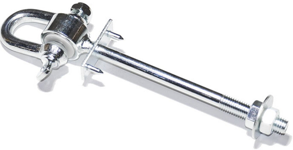 Houpačkový hák se třmenem typ D+: jedná se o houpačkový hák s kotevní deskou a D třmenem v kluzném pouzdře, který je využívá k bezpečnému zavěšení houpaček. Nabízíme ho v povrchové úpravě: galvanický bílý zinek.
