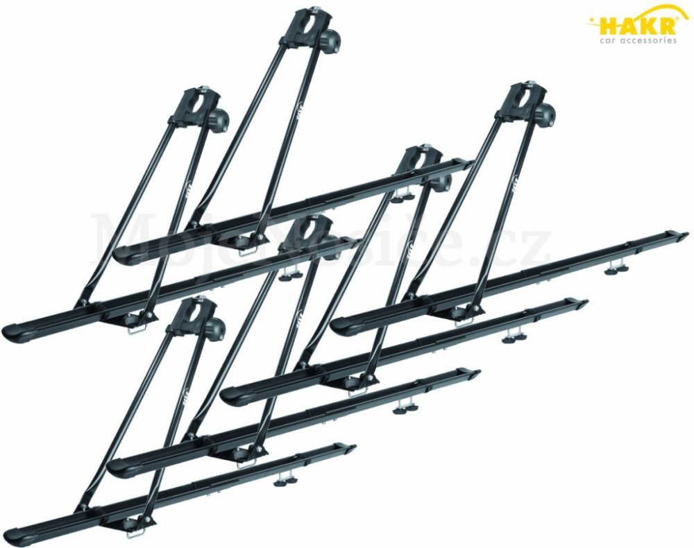 Univerzální nosič kol Hakr CYKLO PRO střední třídy (sada 6 kusů) Materiál kov, koncovky jsou z plastu. Nosič CYKLO PRO je vhodný pro převoz kol na kratší a střední vzdálenosti Montáž za pomocí ocelových u-profilů (třmenů) s roztečí 58mm Pro instalaci do t-drážek ( šířka t-drážky 20mm ) alu profilů příčníků přiobjednejte tři kusy t-adaptérů "ZDE"