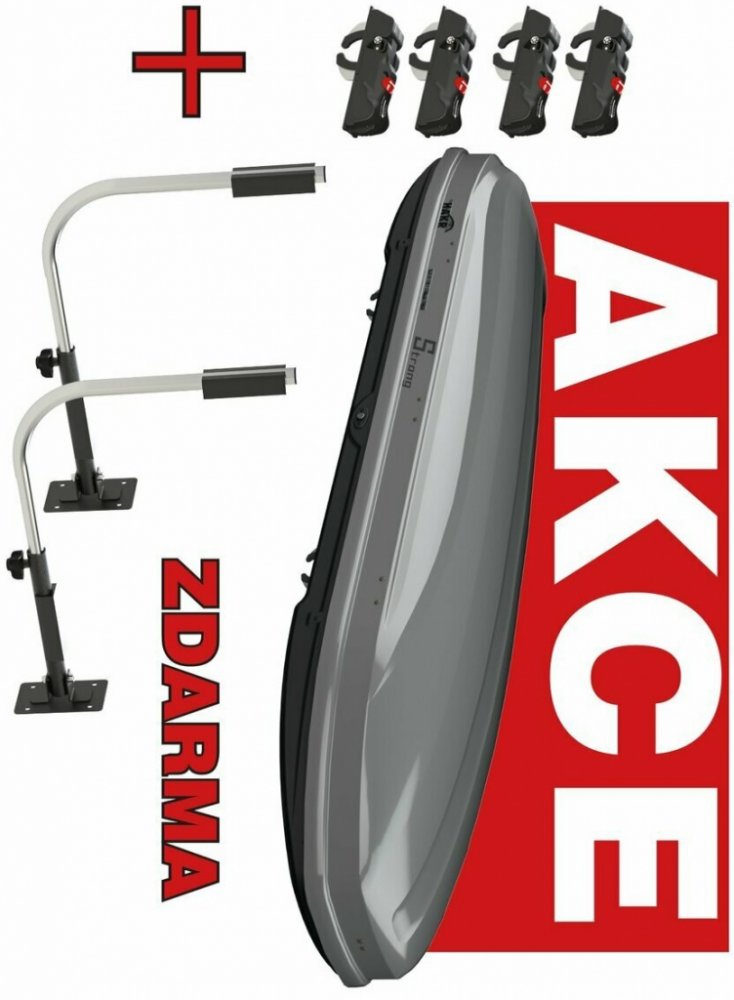 Oboustranné otevírání pomocí kovových mechanických vzpěr usnadní montáž boxu i nakládání zavazadel.
