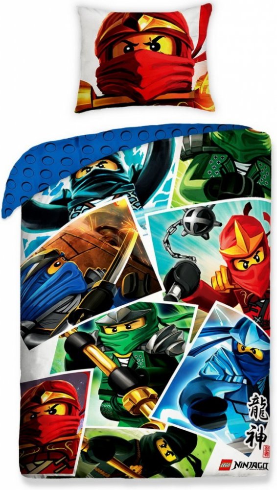 Dětské povlečení na velkou postel ohromí obrázkem bojovníků Lego Ninjago s mistrem Wu na polštáři. Ze zadní strany můžete vidět podklad laděný do modré barvy s bojovými pomůckami. Pokud k lůžkovinám přidáte malé polštářky, rázem se stane dětský pokojíček útulnějším. Přírodní bavlněné povlečení si vás získá na první dotek. Je měkoučké, prodyšné a postará se o klidný a spokojený spánek. Zvládá časté praní a žehlení. Bavlna odpovídá normě Oeko-Tex Standard 100 (nezávadnost, stálost barev a rozměrů).