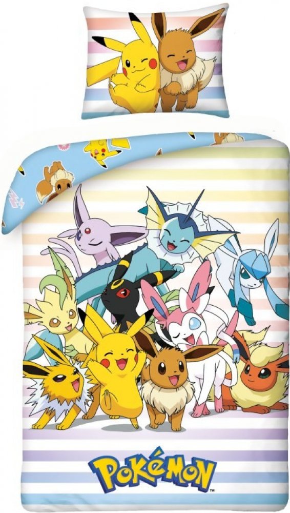 Dětské ložní prádlo Pokémon. Povlečení na velkou postel Pokémon parta. Ložní prádlo na přední straně s pokémony, druhá strana povlečení je odlišná. Bavlněné dětské povlečení Pokémon parta v rozměru deka 140x200cm a polštář 70x90cm. Povlečení Pokémon parta se zapínáním na zip. Ložní prádlo Pokémon je vyrobeno ze 100% bavlny, lze prát na 40°C. Povlečení Pokémon parta můžete doplnit o nové prostěradlo, které máme v nabídce zde.