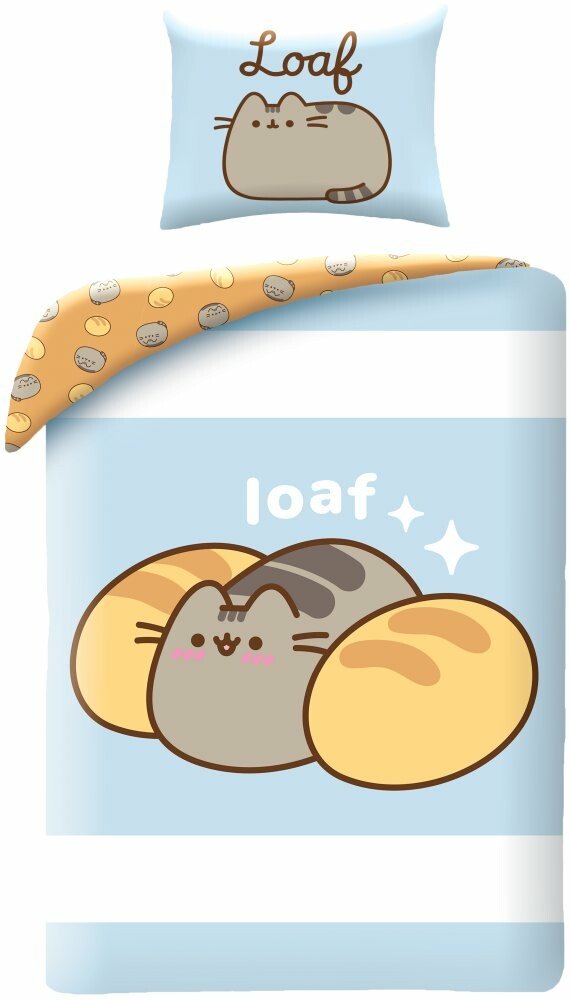 Ložní povlečení s roztomilou kočičkou Pusheen potěší všechny milovníky této oblíbené postavičky bez ohledu na věk. Na lícní straně přikrývky je motiv „Loaf“, což v překladu znamená „bochník“ – Pusheen je zde zachycena v pro ni typické „bochníkové“ pozici, kdy má tlapky schované pod sebou a připomíná nadýchaný chléb. Rubová strana má drobný vzor s Pusheen a baculatými houskami. Povlak na polštář je z obou stran stejný. Povlečení je vyrobeno z kvalitního polyesterového mikrovlákna, které je jemné, hladké a zároveň praktické – rychle schne, dobře odvádí vlhkost a zachovává si stálost barev i po mnoha praních. Souprava obsahuje 1× povlak na přikrývku 140×200 cm a 1× povlak na polštář 70×90 cm.