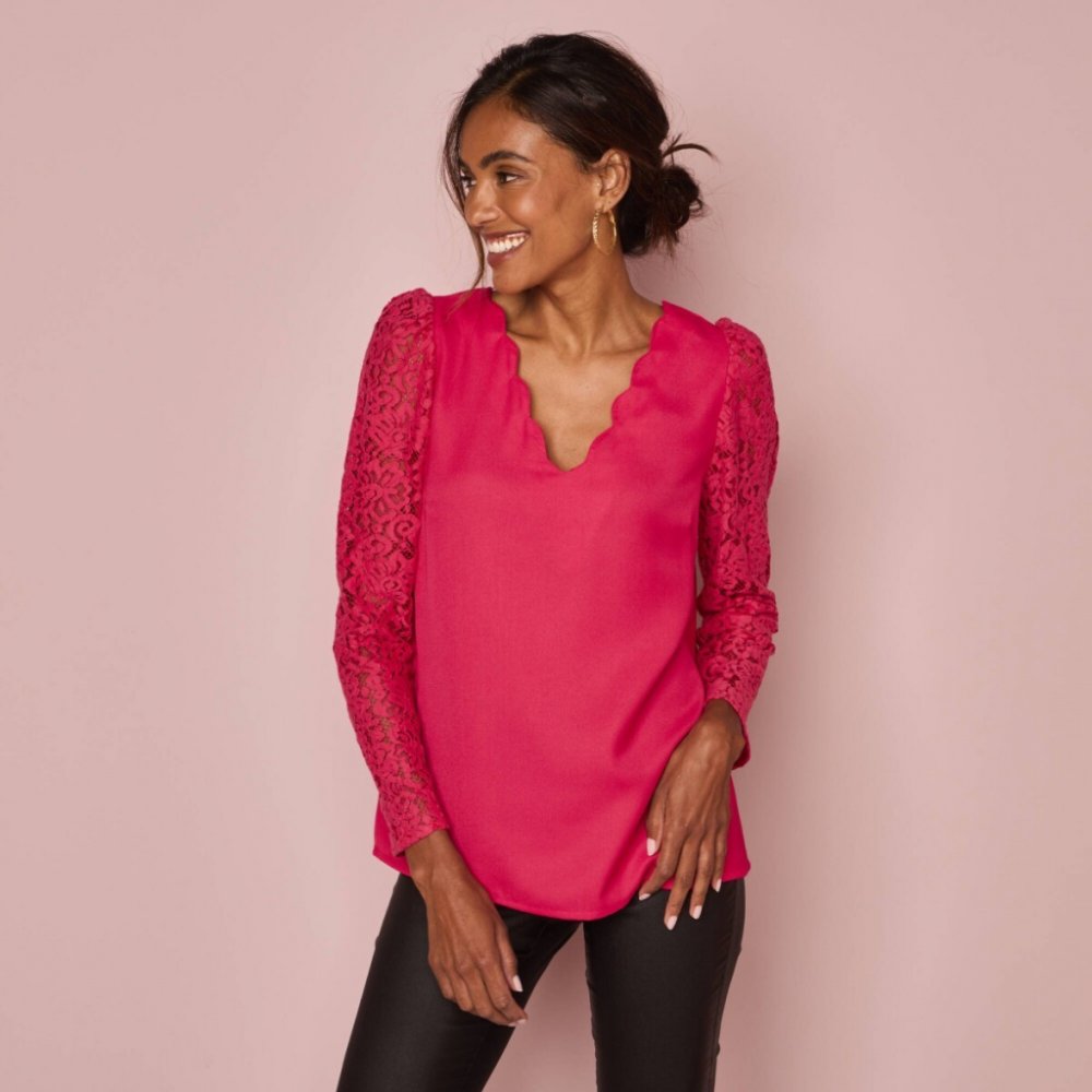 Halenka s krajkovými rukávy a stuhou na zádech malinová