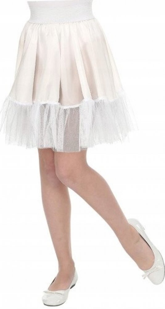 Dětská spodnička v bílé barvě. V pase je připevněna na gumičku. Ideální doplněk k outfitům z 50., 60. a 70. let.