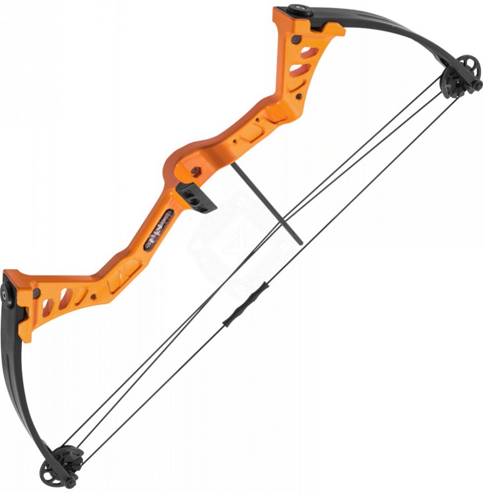 Kladkový luk Bestra Orange 25lbs Hliníkový rám a sklolaminátová ramena Dodávka obsahuje 1x kladkový luk 2x sklolaminátové šípy 26" 1x chránič předloktí 1x základku na šípy Celková délka 68cm Síla tahu 25 liber