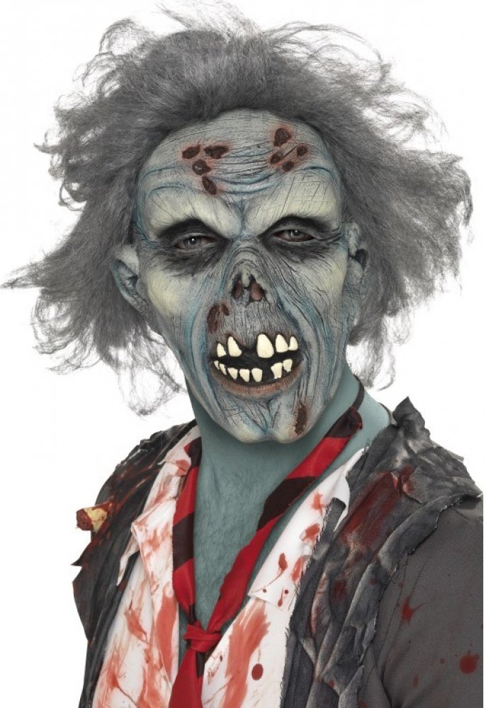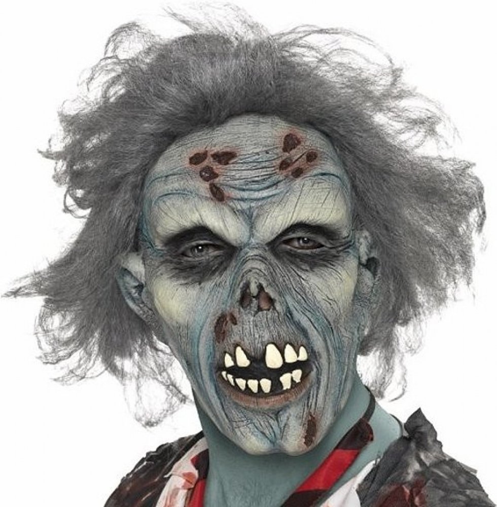 Halloween maska zombie šedá s vlasy