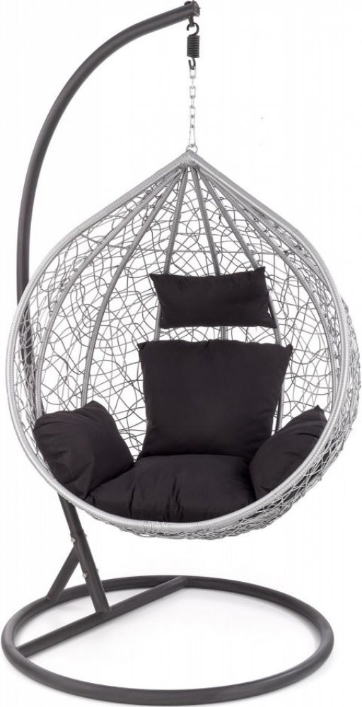 Toto designové závěsné houpací křeslo je trendem poslední doby a bude skvělým místem k odpočinku a relaxaci. Je vhodné do interiéru i exteriéru. Je vyrobeno z umělého ratanu a ocelové konstrukce, což zajišťuje možnost i venkovního využití na terase či zahradě. Je zhotoveno v barevné kombinaci šedé a černé barvy. Díky praktickému zavěšení se můžete jemně houpat sem a tam. Součástí křesla jsou pohod...