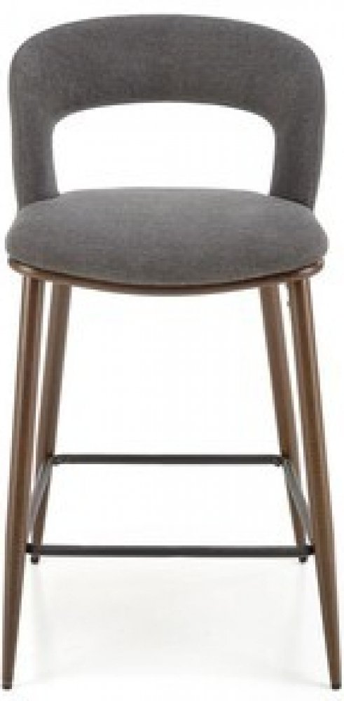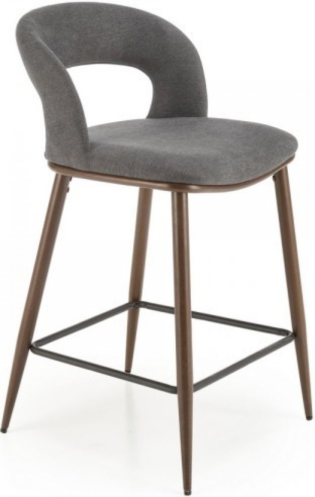 Barová židle H114 vytváří jemný kontrast svým šedým sedákem a kovovou podnoží v barvě ořechu.