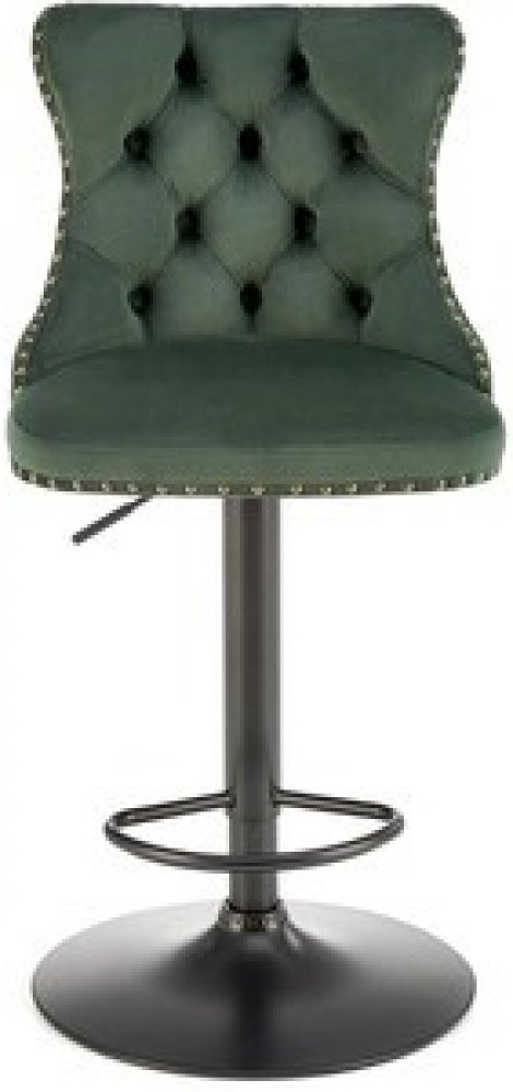 Elegantní otočná barová židle, rozměry: 47/52/96-118/62-84 cm, materiál: sametová látka/práškově lakovaná ocel, barva: tmavě zelená