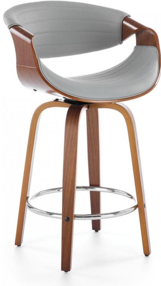 Barová židle H123 je vyrobena z kvalitní překližky s atraktivním ořechovým dekorem, který dokonale ladí s prošívanou eko kůží, dostupnou ve dvou elegantních barevných variantách – šedá a černá. Zvolte si barvu, která nejlépe vyhovuje vašemu prostoru a stylu, a užijte si novou úroveň komfortu a elegance.