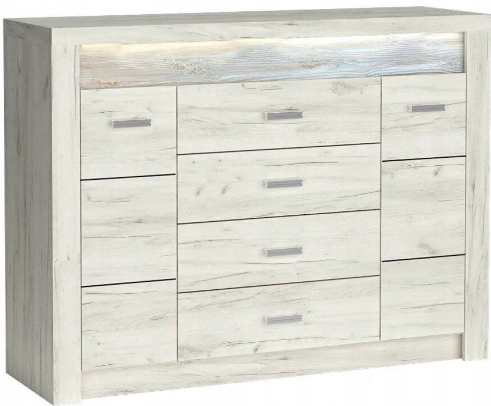 Přineste do vašeho domova harmonii rustikální elegance s komodou Indianapolis. Tento designový kousek v odstínu bílý craft zaujme precizním zpracováním, moderní estetikou a praktičností.