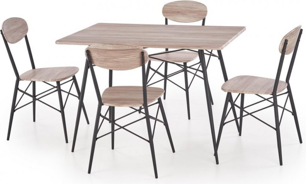 Jídelní sestava KABIR se skládá z jednoho stolu a dvou židlí. Stůl i židle jsou vyrobeny v kombinaci laminovaná MDF a ocel. Své místo set najde nejen v domácnosti ale také v jídelnách, restauracích apod.