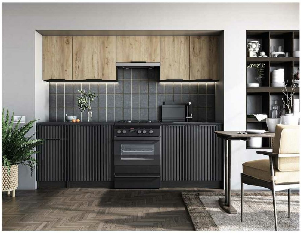 Halmar Kuchyňská linka EMMA 240, Dub Artisan/Černá/Carbon