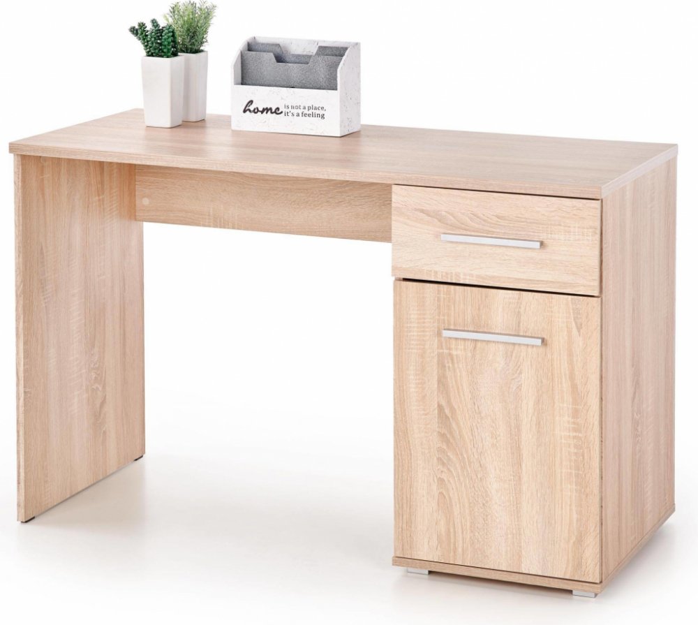 Psací stůl LIMA B1 je vhodný do moderní domácnosti. Na pravé straně je skříňka se zásuvkou. Stůl lze kombinovat s dalšími prvky modelové řady Lima. Rozměry stolu jsou (ŠxHxV): 120x55x77 cm. Materiál k výrobě je laminovaná DTD v barvě dub sonoma / bílá s vysokým leskem. Hrany stolu jsou ohraničeny povrchovou úpravou ABS. Pokud se vám barva nelíbí, můžete si vybrat i z jiných barev.