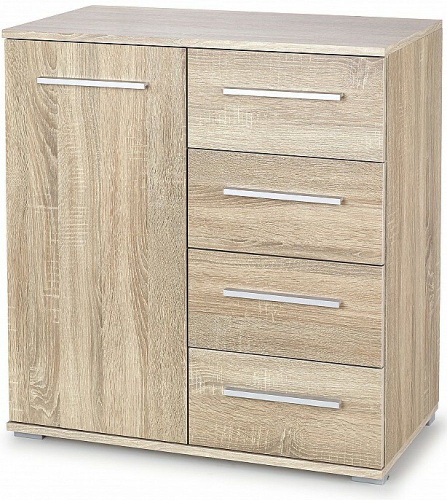 V každé domácnosti je mnoho věcí, které je potřeba někam uložit. Byla vyrobena z vysoce kvalitní laminované desky se zvláštním důrazem na každý detail. Hrany jsou chráněny ABS plastem. Má čtyři zásuvky a jednu skříňku. Díky tomu snadno uložíte oblečení, spodní prádlo, ale i doklady a další důležité předměty. Jednoduchá komoda z kolekce Lima může být perfektním řešením do moderního i klasického int...