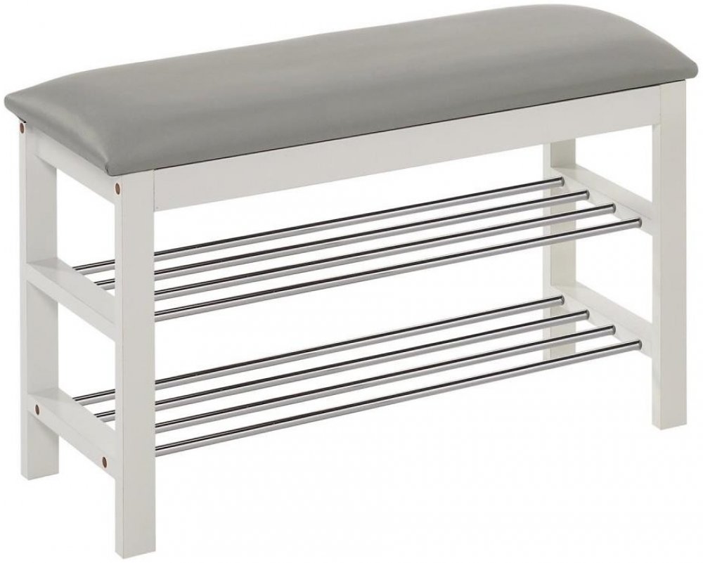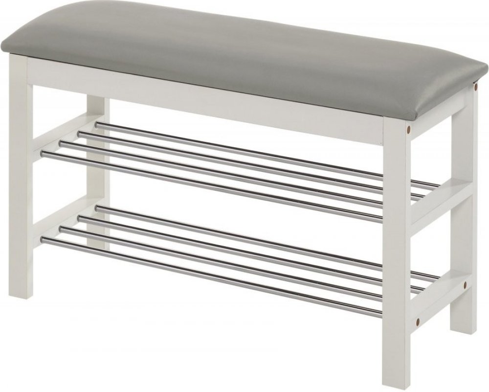 Botník MIRI je kombinací funkčnosti a moderního vzhledu. Skvěle se hodí do každé předsíně. Má dvě desky z ocele na odložení bot. Pohodlí zajistí čalouněný sedák z ekokůže v šedém odstínu. Stabilitu dodává konstrukce z masivního dřeva v bílé barvě. Nosnost 90 kg.