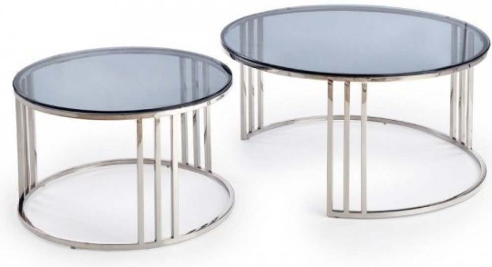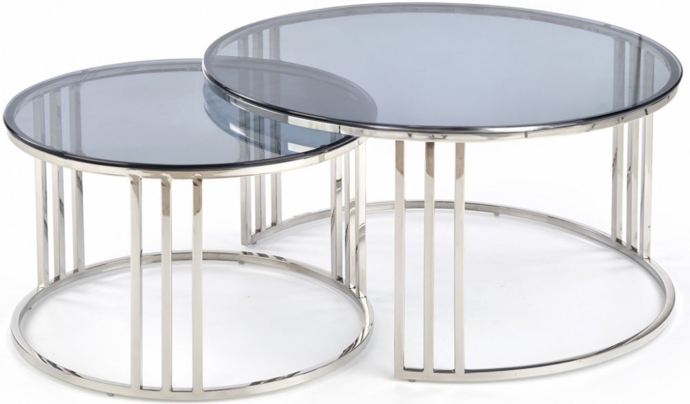 Sada dvou konferenčních stolků MERCURY se bude skvěle hodit do prostoru obývacího pokoje, který je zařízen v moderním nebo industriálním stylu. Kulaté stoly vnesou do vybraného interiéru nadprůměrnou funkčnost spojenou s vysokou estetikou. Kulatá deska je vyrobena z kouřového skla, zatímco rám je vyroben z chromované oceli stříbrné barvy. Stabilní základnu tvoří kruhová konstrukce s trubkami nesoucími další kruh, na kterém je umístěna deska stolu. Moderní nábytek bude napomáhat každodenní relaxaci – například pití aromatické kávy a povídání si s pozvanými hosty. Sestava praktických stolů MERCURY se liší rozměry nabízených prvků, lze je tedy v místnosti používat společně nebo samostatně. Dodáváno v demontovaném stavu.