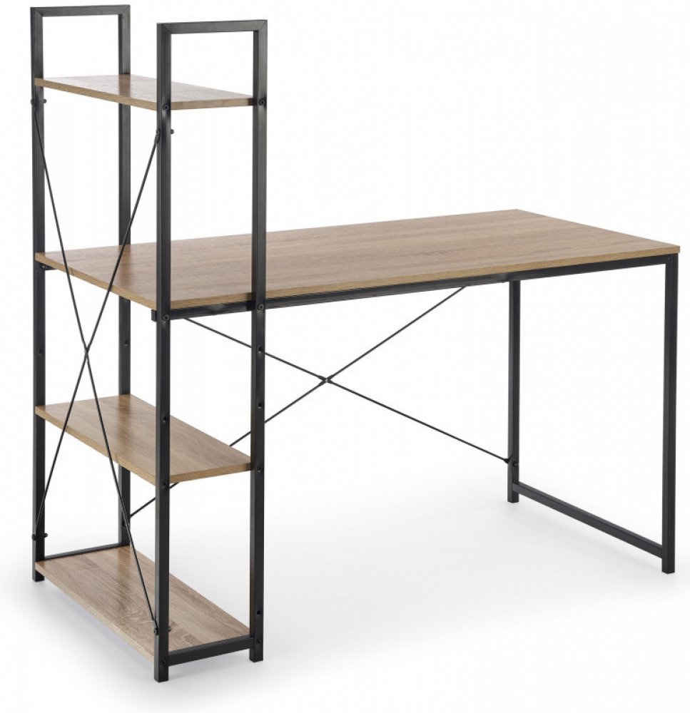 Moderní pracovní stůl v loft stylu ze série Narvik je vyroben v kombinaci dřeva v dekoru dub sonoma a černé ocelové konstrukce a skvěle zapadne do každé moderně zařízené kanceláře, domácí pracovny či studentského pokoje. Regál, který je součástí stolu, nabízí díky několika policím dostatek úložného prostoru. Stabilitu stolu zajistí pevná podnož z oceli, která je ošetřená práškovým lakováním a zabr...