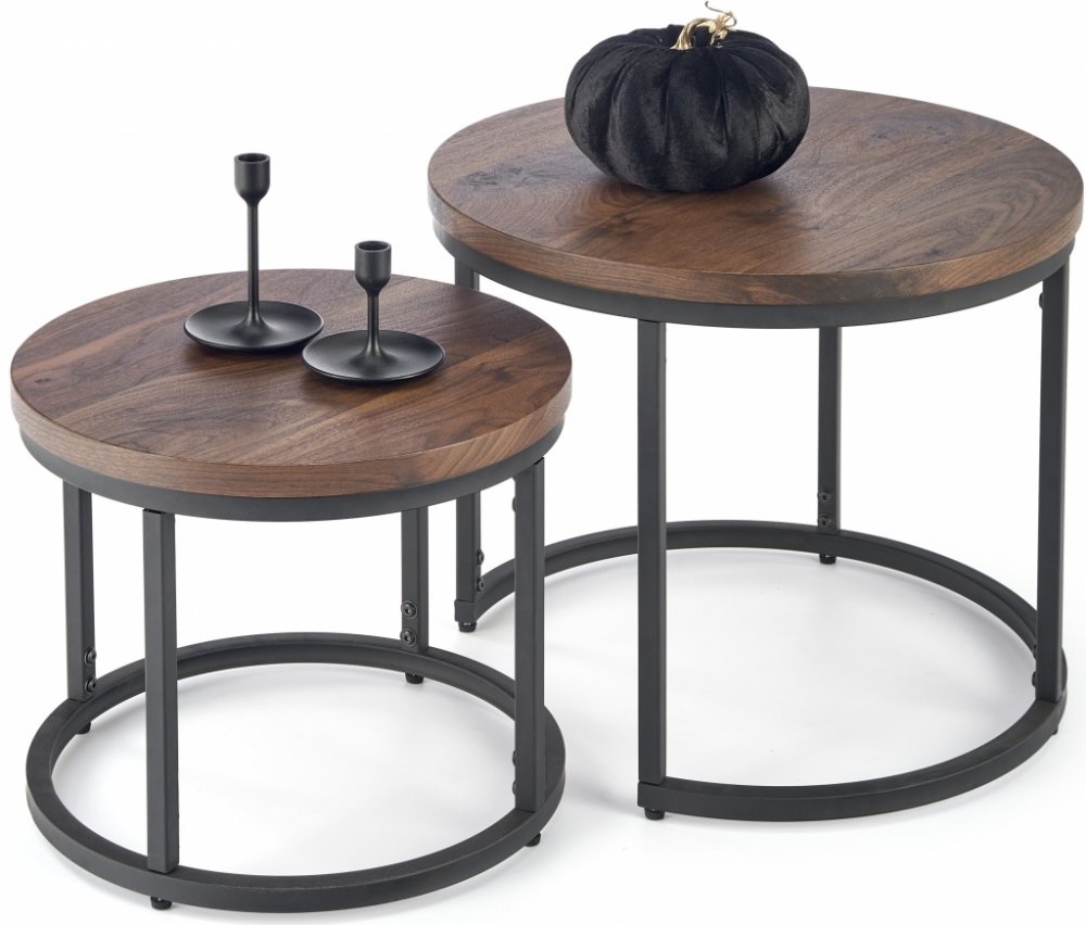 Tyto stolky lze umístit k pohovce nebo mezi křesla, kde dobře splní svou funkci jako plocha pro občerstvení, nápoje, knihu nebo ovladač k televizi. Můžete je použít společně jako sadu nebo samostatně. Jejich vrchní deska je vyrobena z MDF desky v dekoru ořechu, který dodá interiéru moderní vzhled.