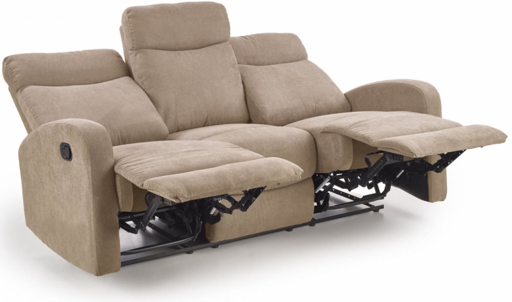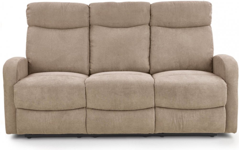 Sedací souprava Oslo, trojsedák Polohovatelný trojsedák Oslo využijete jak v domácnosti, tak v kanceláři. Dík rozkládacího mechanismu nabízí příjemnou možnost relaxace. Jeho konstrukce je vyrobená z pevného MDF s kovovými prvky. Potažená je měkkou pěnou a šedou textilií. Levou a pravou část lze polohovat pomocí ovládacího panelu na vnější straně područky. Prostřední část polohovatelná není. Maximální nosnost je 300 kg. K tomuto trojsedáku si můžete zakoupit rovněž polohovatelný dvojsedák a křeslo Oslo. Trojsedák Oslo