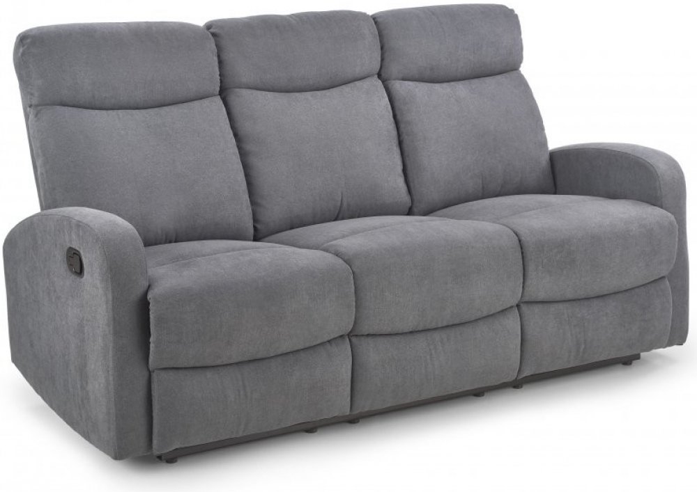 Pohovka Oslo, trojsedák Polohovatelný trojsedák Oslo využijete jak v domácnosti, tak v kanceláři. Dík rozkládacího mechanismu nabízí příjemnou možnost relaxace. Jeho konstrukce je vyrobená z pevného MDF s kovovými prvky. Potažená je měkkou pěnou a šedou textilií. Levou a pravou část lze polohovat pomocí ovládacího panelu na vnější straně područky. Prostřední část polohovatelná není. Maximální nosnost je 300 kg. K tomuto trojsedáku si můžete zakoupit rovněž polohovatelný dvojsedák a křeslo Oslo. Trojsedák Oslo
