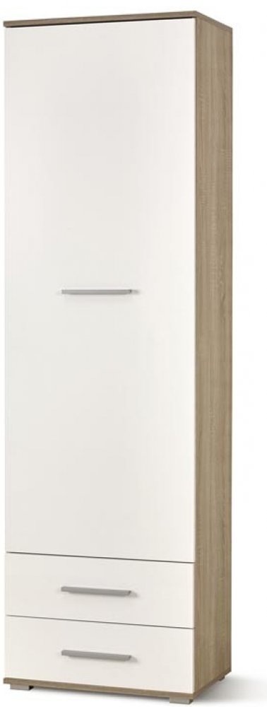Elegantní regál se dvěma praktickými šuplíky a skřínkou s poličkami, rozměry: 60/40/200 cm, materiál: laminovaná dřevotříska, hrany ABS, barva: dub sonoma/bílá