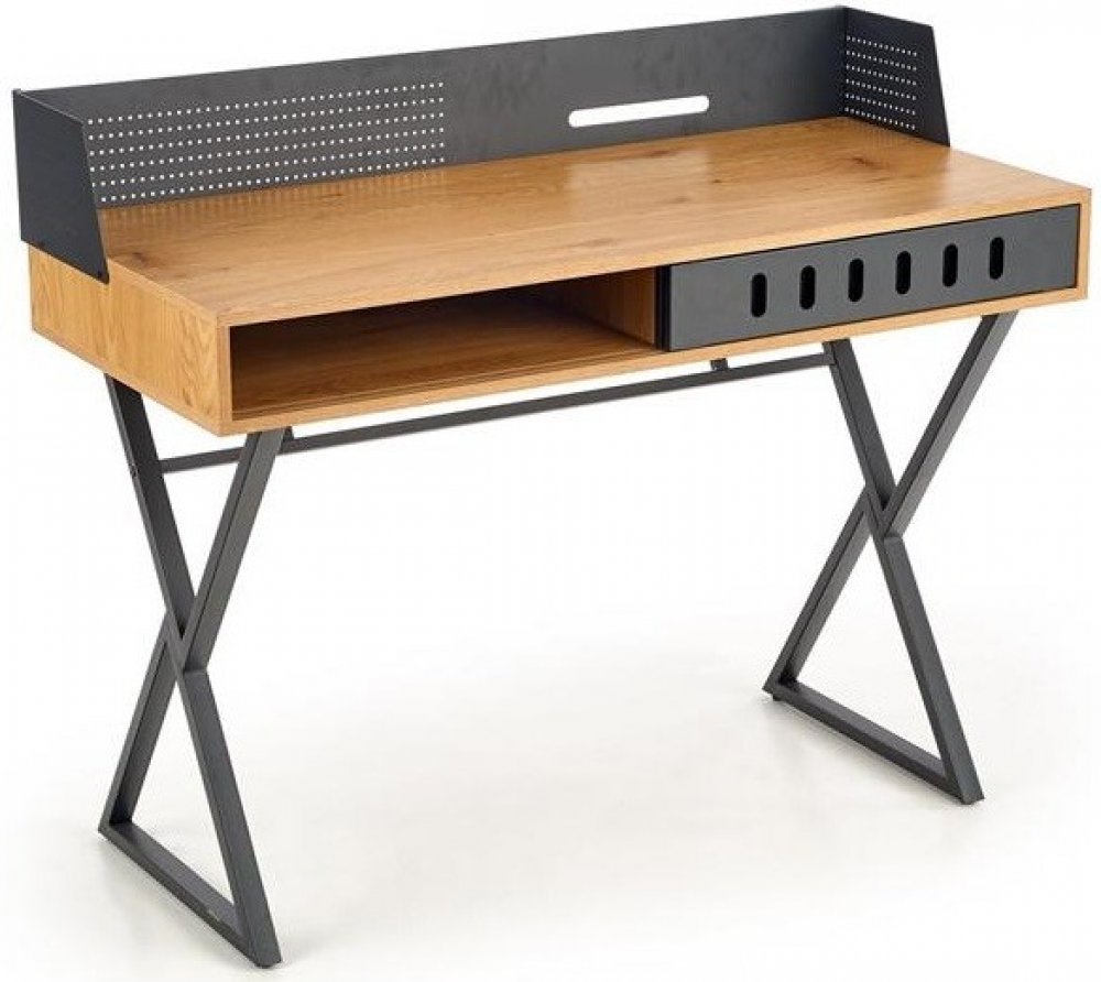 Psací stůl v barevné kombinaci zlatý dub a černá se hodí do kanceláří, domácích pracoven, studentských a dětských pokojů apod.