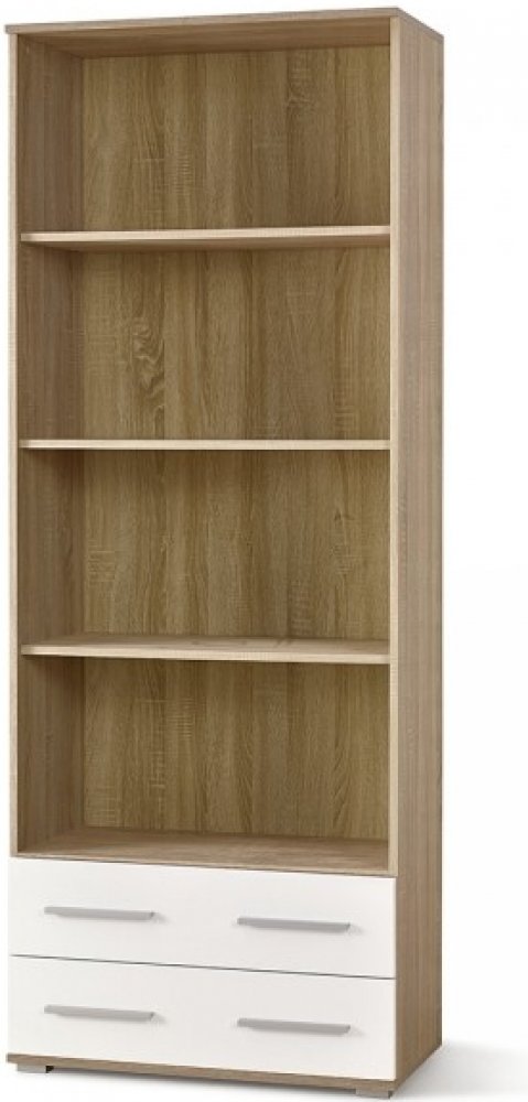 Vysoká policová skříň Lima Vysoká policová skříň Lima Vysoká policová skříň Lima je součástí celé nábytkové řady Lima. Skvěle se tedy bude vyjímat jako součást obývací stěny i jako samostatně stojící kus nábytku. Zásluhou decentního designu zútulní jakýkoliv interiér. Její konstrukce je vyrobená z dřevotřískových laminovaných desek opatřených ABS hranou. Dodáváme ji ve 2 barevných variantách - v kombinaci bílého vysokého lesku s dubem sonoma a v dubu sonoma. Korpus obsahuje 4 policové oddíly a 2 široké šuplíky.