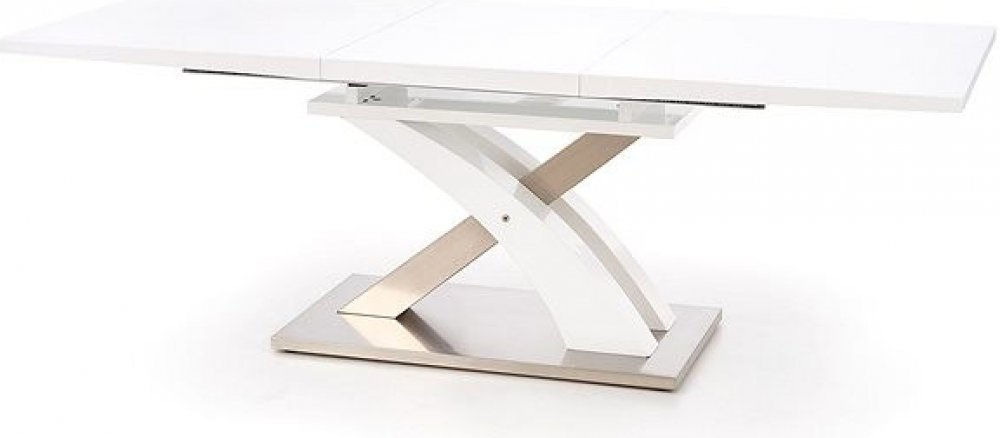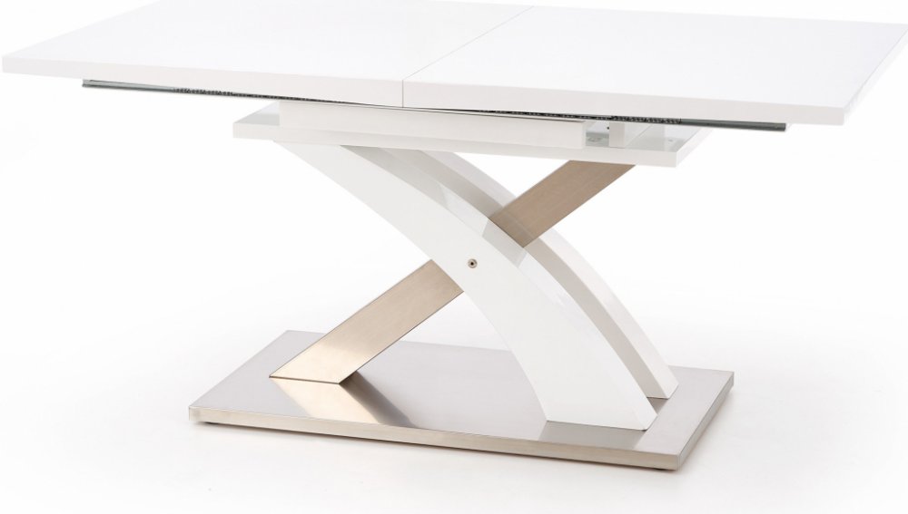 Jídelní stůl Sandor je velmi moderní stůl, jehož předností je jeho podnož, která je vytvořena ve formě křížení na pevné podstavě. Deska stolu je vyrobena z lakovaného MDF v bílém lesklém dekoru. Podstava celé konstrukce je poté vyrobena z nerezové oceli, která spolehlivě posiluje zbytek celé konstrukce. Nerezová ocel je velice kvalitní, trvalý, pevný a odolný materiál s dlouhou životností. Celková nerezovo-bílá lesklá kombinace pak bude ideálním doplňkem pro každý…