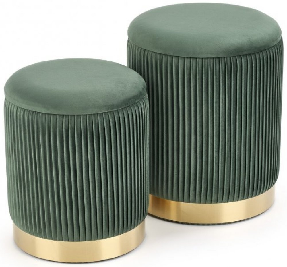 Sada 2 ks taburetů MONTY, čalouněných tmavě zelenou sametovou látkou na zlatém základu, byla vytvořena pro elegantní interiéry zařízené v glamour stylu. Sametová látka je výjimečně měkká a odolná a třpytivý vlas materiálu dodává taburetkám eleganci a jedinečný charakter. Kulaté vršky MONTY mají husté prošívání, které jim dodává eleganci, a úložný prostor poskytuje další místo pro uložení věcí, kte...