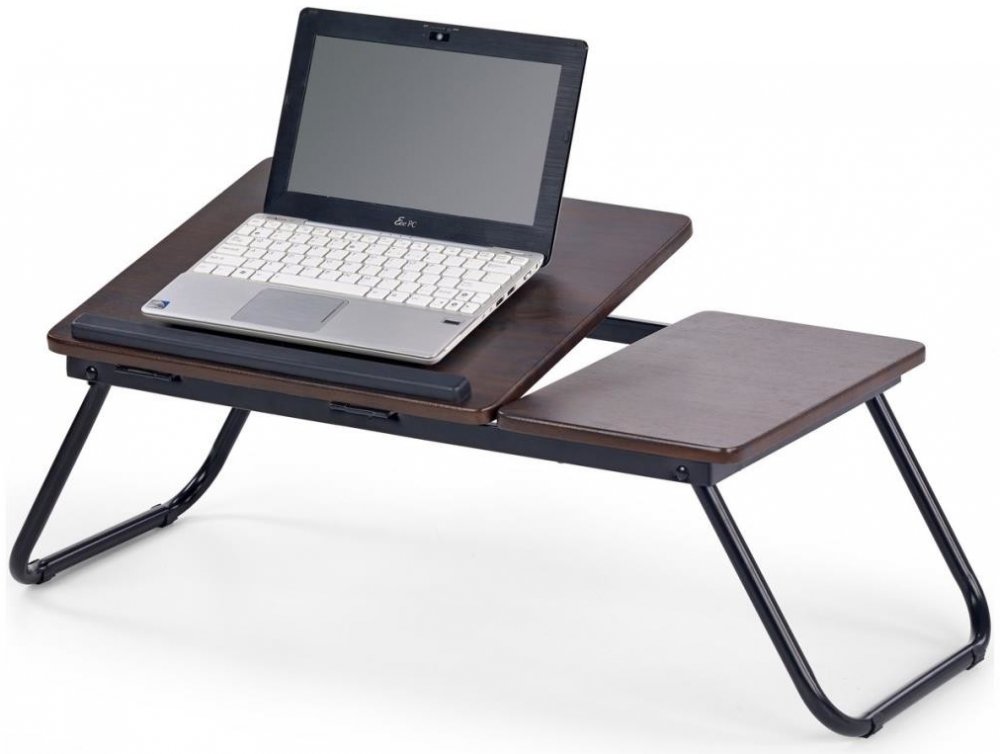 Stůl na notebook B-19 je velmi funkční, šikovný, malý výrobek s moderním vzhledem. Vyrobeno z tmavého ořechového laminovaného MDF a práškově lakované oceli, velmi tmavý ořech. Deska stolu se zvedne a rozdělí na dvě části. Delší část má klopu, která chrání notebook před sklouznutím z desky stolu. Lze jej použít jako nástavec k běžnému psacímu stolu nebo jej lze použít samostatně. Skvěle se hodí i p...