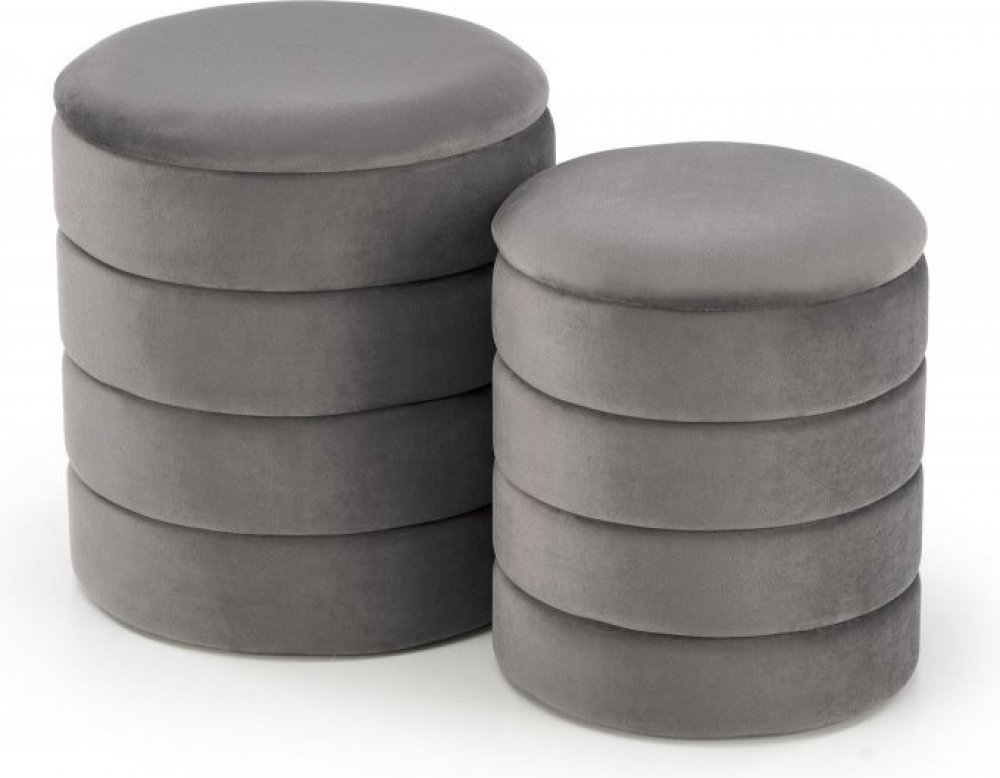 Sada dvou moderních taburetů PACHO s praktickým úložným prostorem. Taburety jsou čalouněné sametovou potahovou látkou.
