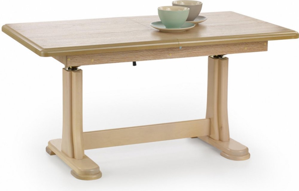 rozměry: 125÷164/65/60÷72 cm; materiál: vrchní deska - lamino MDF, nohy - bukové dřevo, barva: dub sonoma