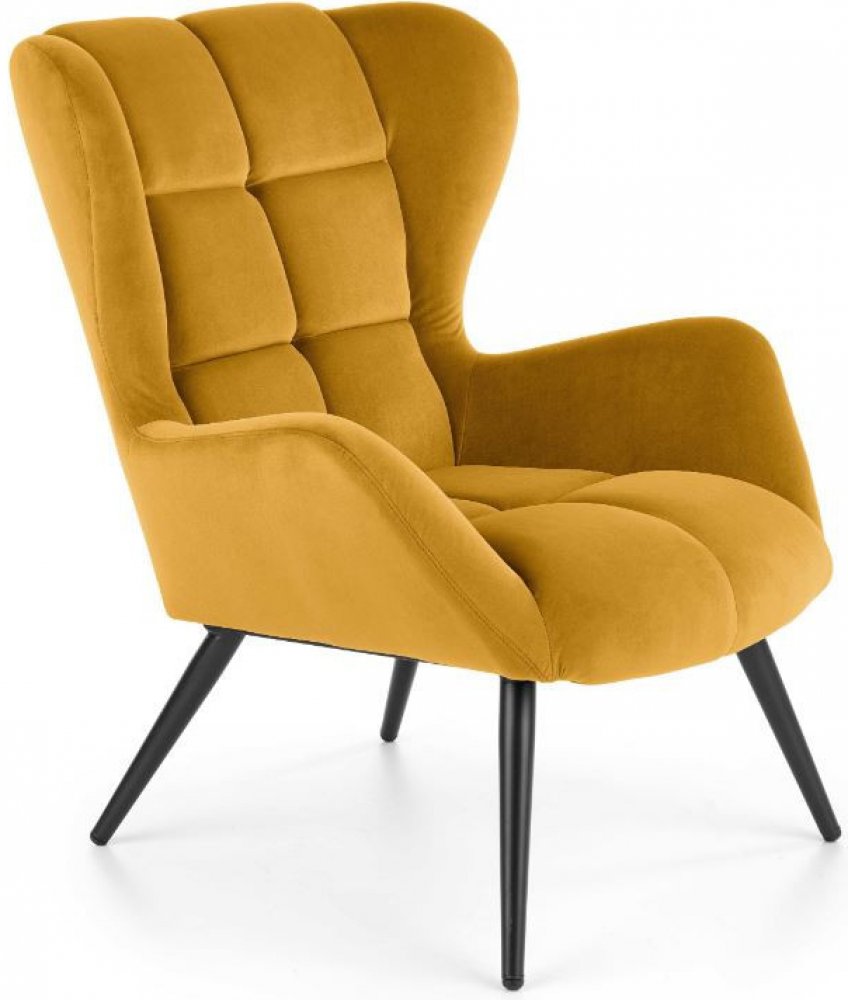 Čalounění je vyvedeno v hořčicově žlutém tónu. Látka Bluvel se řadí mezi sametové látky. Látka má jemnou strukturu, hebký povrch a mírně se leskne. Opomenout nelze ani její praktické vlastnosti, jako je pevnost a odolnost vůči oděru i žmolkování.