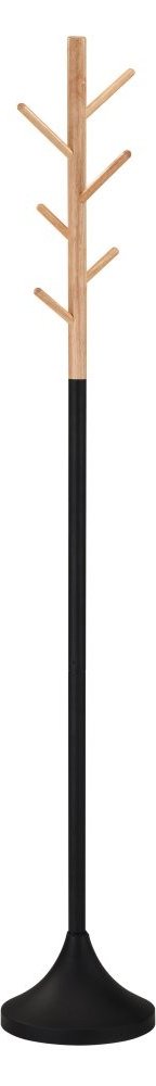 Volně stojící věšák VAXJO stane funkčním prvkem vybavení předsíně, který bude zároveň atraktivní dekorací podtrhující celkový styl místnosti. Nabízený model je vyrobený z černě lakované oceli a masivního dřeva. Stabilita je dána kulatou základnou ve tvaru kužele. Věšák nabízí šest háčků uspořádaných po délce dřevěné části.
