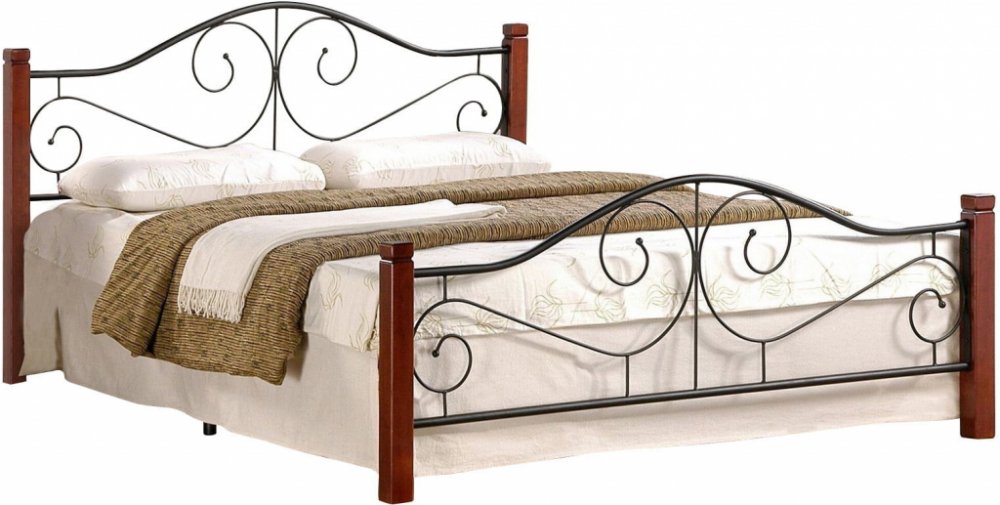 Kovová postel ze série Violetta je kombinací modernosti a elegance. Postel s vysokým čelem na obou stranách je vyrobena v kombinaci černě lakované ocele a masivního dřeva v odstínu antické třešně. Součástí je také rošt ze silných a pružných dřevěných lamel, které podporují ergonomickou polohu těla během spánku a díky lepší cirkulaci vzduchu prodlužují životnost matrace. Postel je dodávána bez matr...